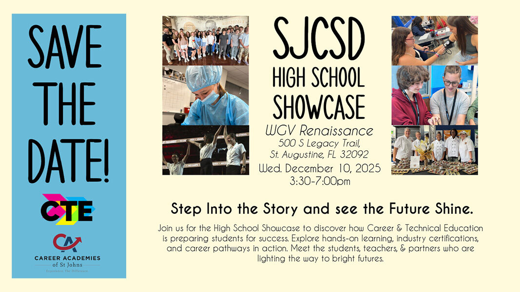 The High School Showcase will be held Wednesday, December 10, 2025, from 3:30 – 7 pm, at the World Golf Village Convention Center. Current 8th & 9th grade students and families wishing to learn more about Program of Interest offering are invited to visit the showcase during this time.