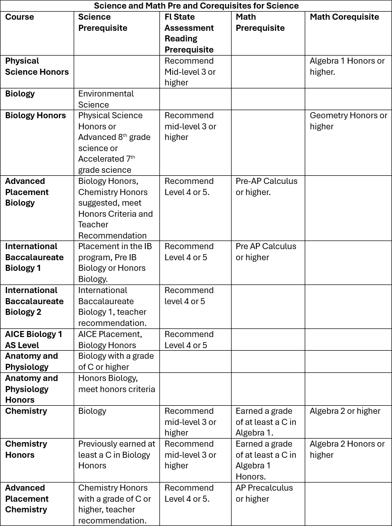 Many courses listed in the St. Johns County Course Catalog have prerequisites and corequisites. These prerequisites and/or corequisites must be honored unless student petition and the ensuing conversation with a school counselors indicate that an exception needs to be made based on data and a student’s Customized Learning Path.